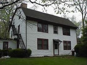 Lime Paint base (Natural), has no color added. It can be used to whitewash an old masonry building with only two coats and turn a dingy structure into a “museum-like” historic landmark. This is the Gambrel Roof House in Historic Fallsington, PA.