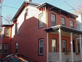 A home in Lambertville, NJ originally had a shelter coat of lime wash put on the soft under-fired brick. #345 St. Astier Lime Paint was used to refresh the building, protect the brick and maintain good breathability for the coating so as not to trap moisture in the wall.